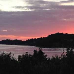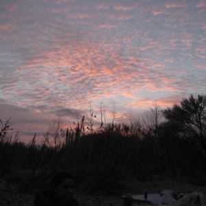Sunset on the Guadalupe River. A day of kayaking, fishing with the guys. Fire's lit, dinner soon.