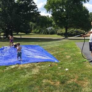 Washing a tarp turns into slip and slide! Simple end-of-summer fun!