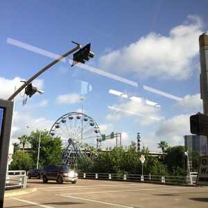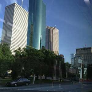 Into downtown Houston on the bus going home.
