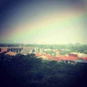 Rainbow ends at Rice University Stadium