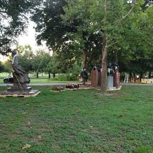 Bronze statues being moved in the park