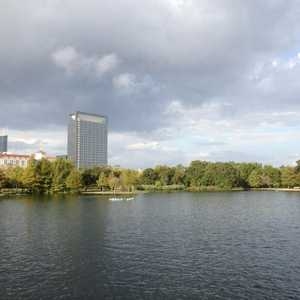 Saturday in Hermann Park: lake view with Med Center