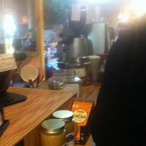 Tuesday morning and I'm standing in line at Grounded Coffee in West Village. It's crowded in a good way.