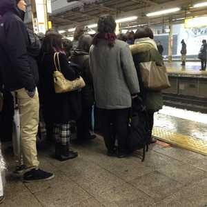 Musashino — Tokyo gets whiteout again. Snow keeps falling down on us stuck on platform, making lines politely in very Japanese way.