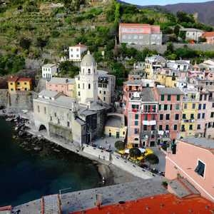 Vernazza — …but a few more may suffice. Contrasting colors cascade the eyes everywhere you look. Grape vines wind their way up the terraced ridges that hug the harbor. Nestled in its safe embrace, pastels c...