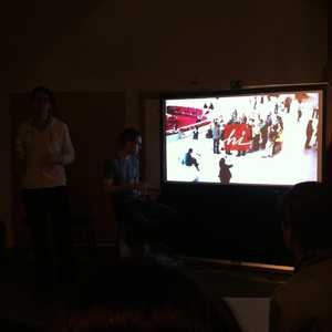 Gathered around the art. Brooklyn Beta.