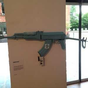 The exhibit was on AK-47s, and how easy it was to get one, and the cost this represented in human lives around the world. They had one that you could hold to see if simply holding one would be seductive.It is.
