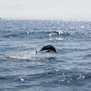 Dolphins jumping out of the fog