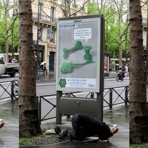 The heavy weight of emptiness, begging down a billboard inciting at recycling and staying fit