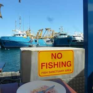 Something fishy in Fremantle. View on the fishing harbour from Cicirello's fish restaurant.