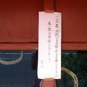 Tokyo — This aging restaurant in my trying-to-modernize-to-ride-the-SkyTree-wave neighborhood is closing its doors after what must be decades of business. The announcement is this message, its impersonal tone...