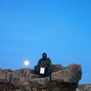 Moonlight writing. Ugandan soldier taking notes on the Mogadishu coast just before curfew. I went swimming.