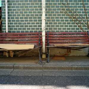 新宿区と渋谷区の境目、ぼくは渋谷区でこれを書き、老いぼれたベンチは新宿区にある。