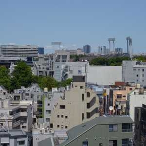 Tokyo — マンションの8階に住んでいる。東側のベランダから国立競技場の照明塔が見えることは知っていたが、最近、西側のベランダからも見えることに気がついた。 屋上(11階相当)まで行けばもっと見えるのでは? と思って登ってみると、座席まで見えた。そこから85ミリのレンズをつけて撮影したのがこの写真である。写真全体を表示して右端のレンガの建物が日本青年館、左端にちょこっと見える緑までが競技場のはず。つまりこの...
