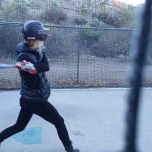 Who knew that an RV park might have a batting cage. KL works out the road kinks.