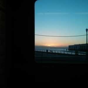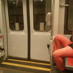 Enjoying the last moments the train is empty before the commuting hordes descend. Also, that guy's neon green shoe laces.