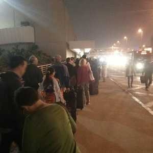 The longest security queue I've ever seen. (The door is over a block away.) Thanks, LAX?