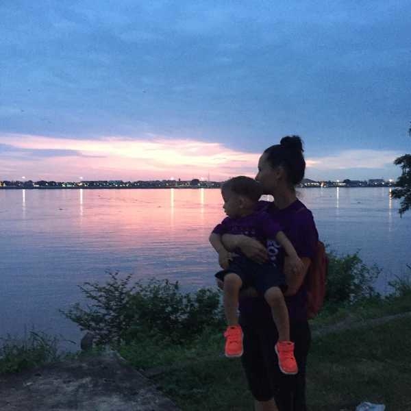 My beautiful wife pregnant with our second child, enjoying the sunset over the Mequon River with our beloved Haikili.