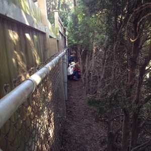 These kids are behind the bush at a park...they're collecting sticks and making "camp fire"