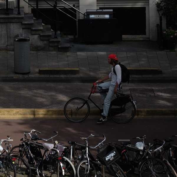 Amsterdam — Amongst all the photos of things you take when you are away I like to have a project, and for this one I sit in a chair with a long lens to catch the people riding bikes across the canal from the flat...