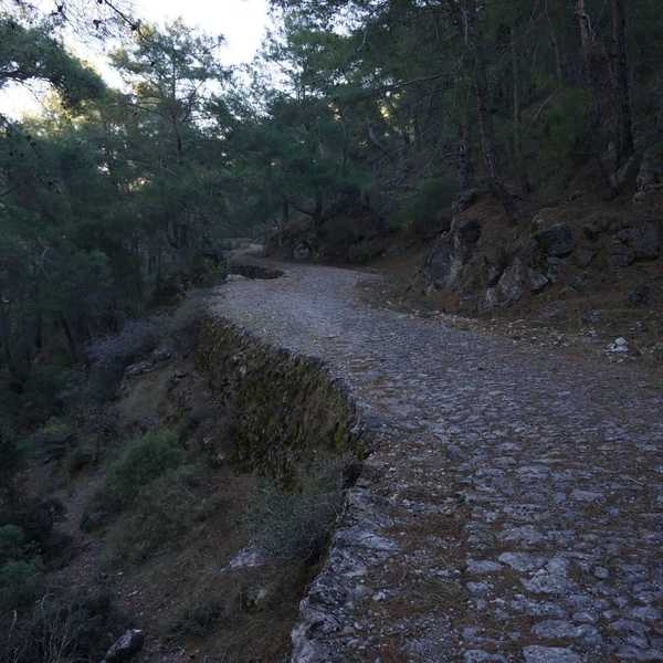 Fethiye — This road is made of stones. You can’t drive on it any more, for it’s broken in places, and there is a new, asphalt road which hairpins between the two ridges on the way to Kaya. I don’t know how old ...