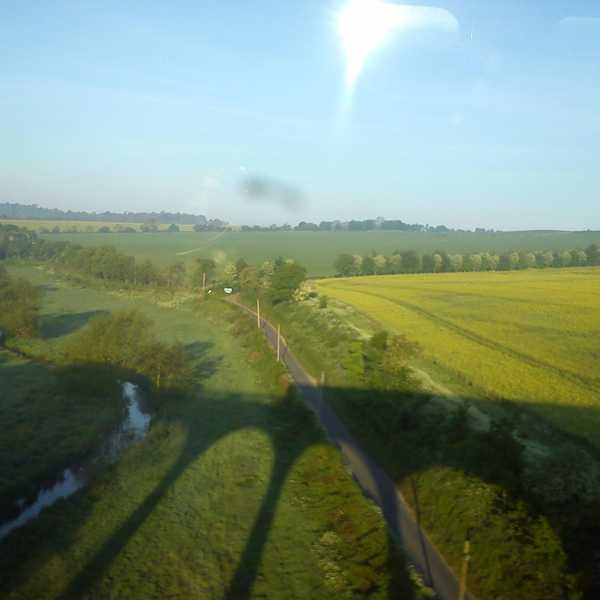 Dartford — I hurriedly snapped this photo while my train home was zooming across this viaduct. That’s the River Darent below, and beyond that the picturesque village of Eynsford. In the other direction along t...