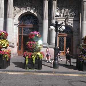 First time on the airport shuttle. "We are now approaching George Square." Feels like being on the Glasgow tour bus.