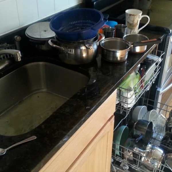 1st step to doing dishes: pile 'em up next to the sink. A habit from house we rented in college.